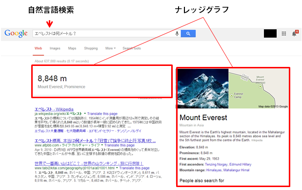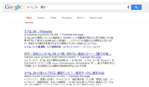 で検索しないと出てこなかったエベレストの高さに関する情報が、