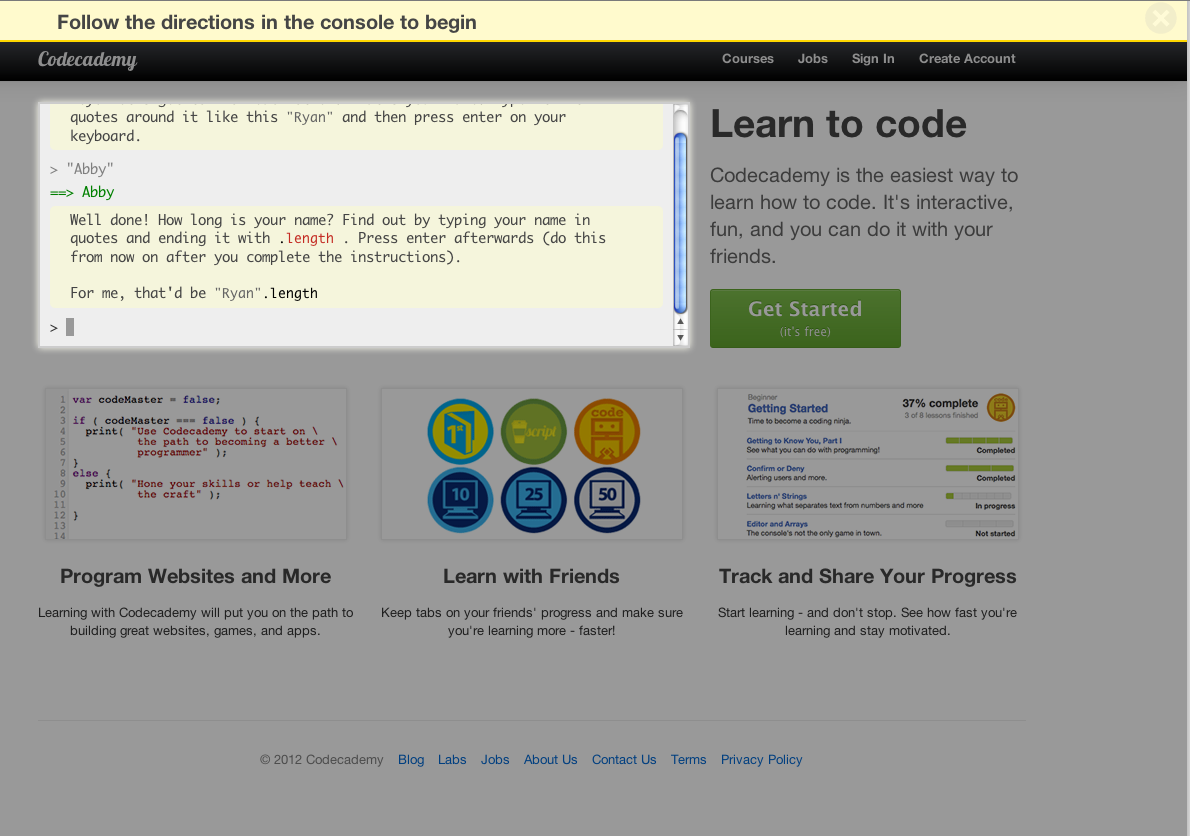 最後の特徴はどのアプリやサービスにも当てはまるものではありませんが、コーディング学習サービスCodeacademyが実践する素晴らしいユーザー教育プロセスを紹介しておきましょう。