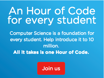 「21世紀へようこそ。私達が1,000万人の学生とコンピューターサイエンスを引き合わせるための力になってください。必要なのは1時間のコーディングだけ。(Welcome to the 21st Century. Help us introduce 10 million students to computer science. All it takes is one Hour of Code.)」
