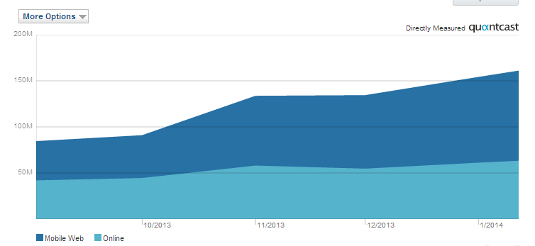 そんな噂を後押しするのが、同じく「Quantcast」から入手したバイラルメディア「BuzzFeed」のトラフィック推移を表す以下のグラフです。