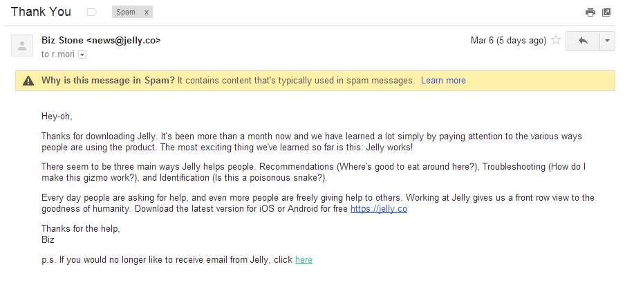 Twitter創始者のビズ・ストーンからアップデートを要請するメールが届きました)