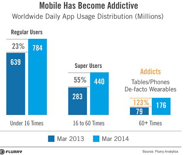 参考: Mobile addicts launch their apps 60 times a day (VentureBeat)