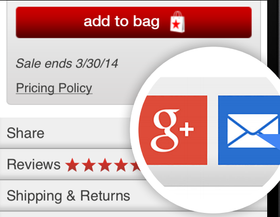 そんなユーザーでも時間の余裕があるタイミングで後々購入に踏み切れるように、「買い物かごに入れる」、「SNSでシェア」、「メールで送る」などのオプションを必ず用意してあげましょう。