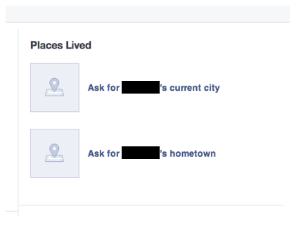 既にご存知の方も多いように、Facebookはユーザーのプロフィール情報をよりオープンにする為の施策として、プロフィールの各欄に「Ask( 質問する(日本語だとどうなってるか分かりません) )」ボタンを設置してきました。