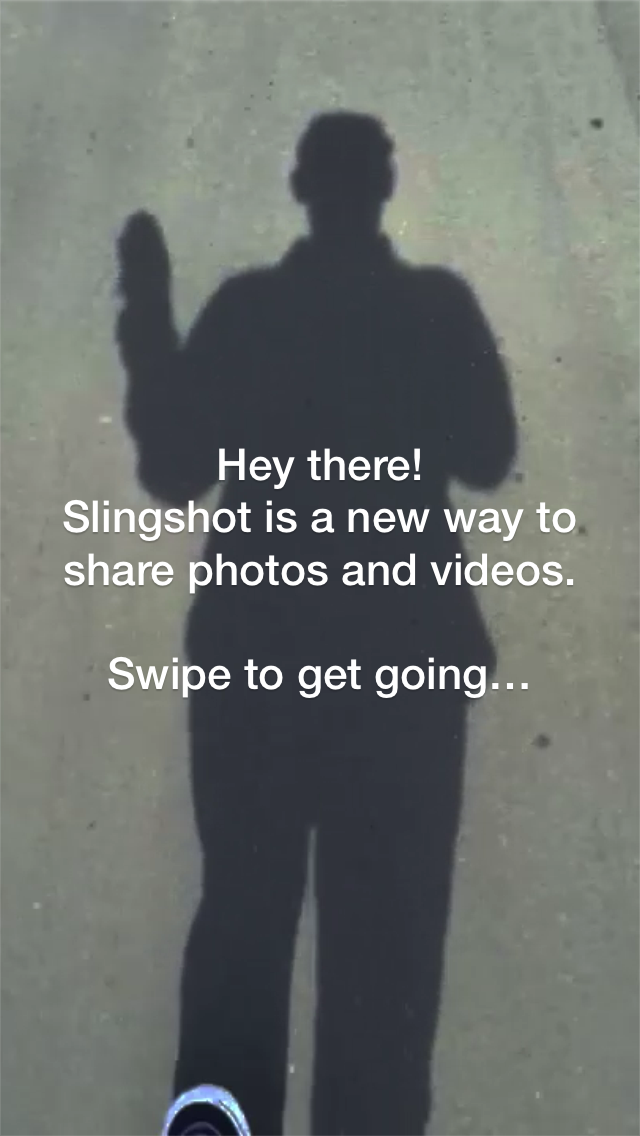 (こんにちは!Slingshotは写真やビデオを共有する新しい方法です。スワイプで次へ進みましょう。)