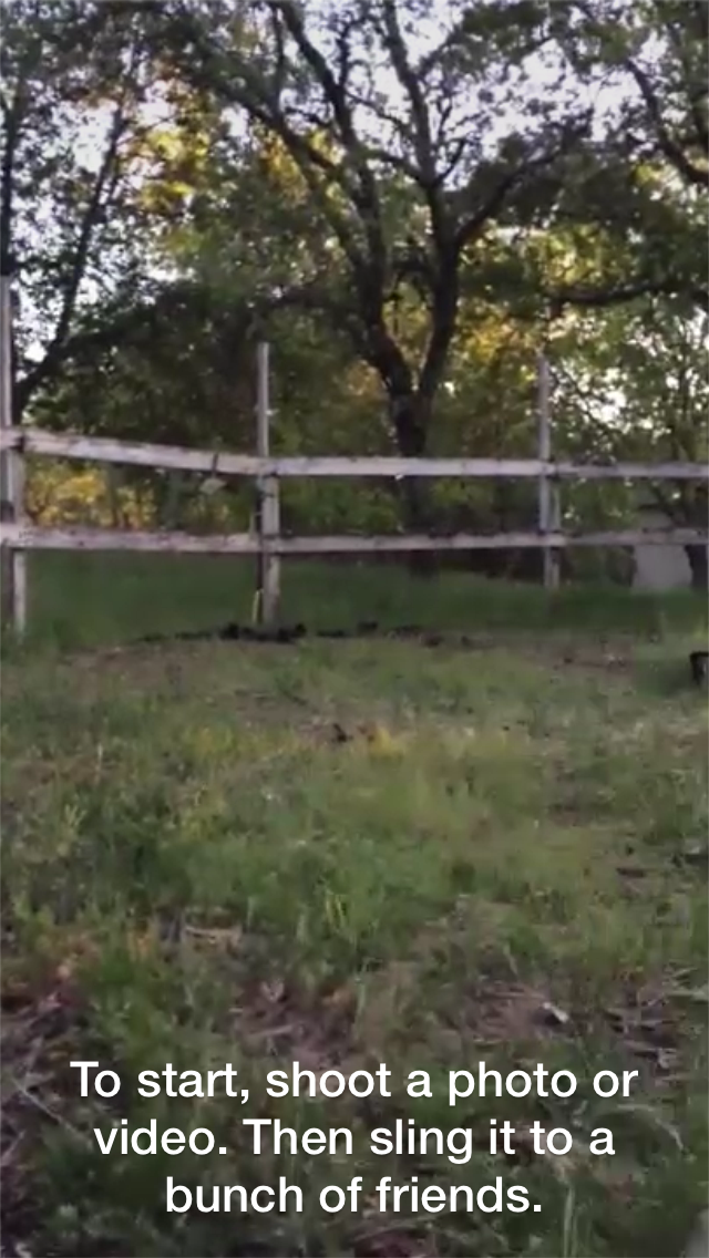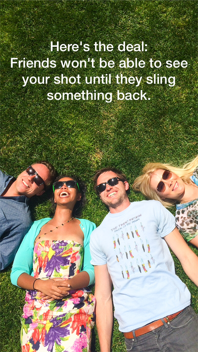 (Slingshotを開始する為に、写真か動画を撮りましょう。撮り終わったら、複数の友人にその写真や動画を投げつけよう。)