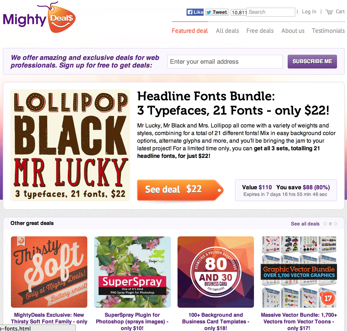 Mighty Dealsはウェブデザイナーとディベロッパー向けのクーポンに特化したニッチなサイトであり、英語が読める方ならば、自分のニーズに合ったクーポンを見つけることができるかもしれません。