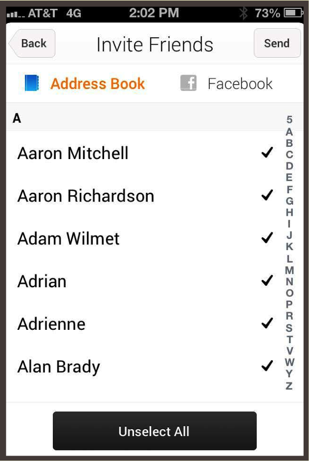 ユーザーからすれば、招待状を送りたくない人を一人一人マニュアルでユーザーがリストから外すか、全てのチェックを一気に外す「unselect all」かの2択しかありません。