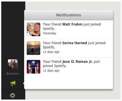 下のスクリーンショットは、FacebookでもつながっているユーザーがSpotifyにユーザー登録した際、その様子がSpotifyのアプリページに表示される一例です。
