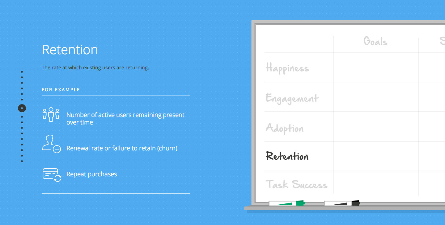 獲得機関別の継続ユーザーの数、解約率、リピート率など、プロダクトの継続利用に関するデータがRetentionの構成要素にあたります。
