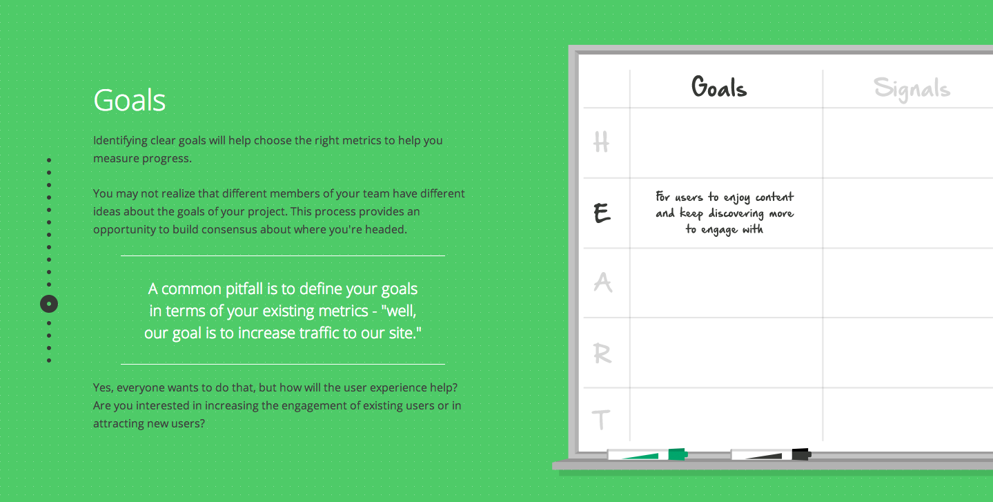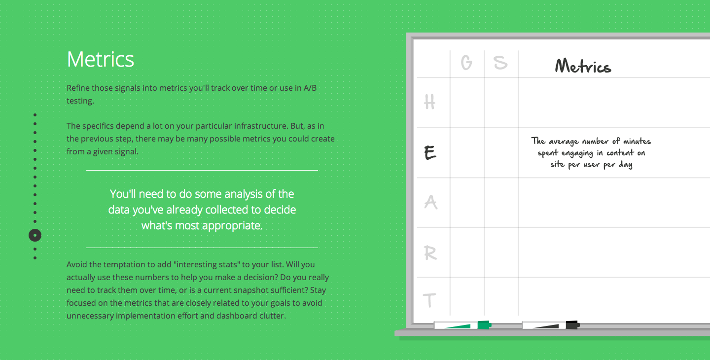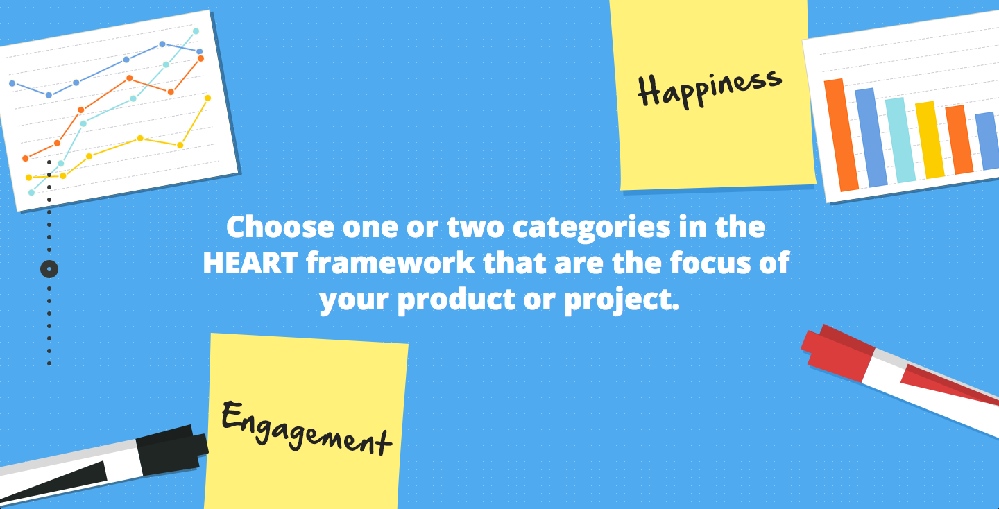 HEARTフレームワークの各要素を理解したら、あなたのプロダクトにとって最も重要な1つもしくは2つのカテゴリを選択してください。
