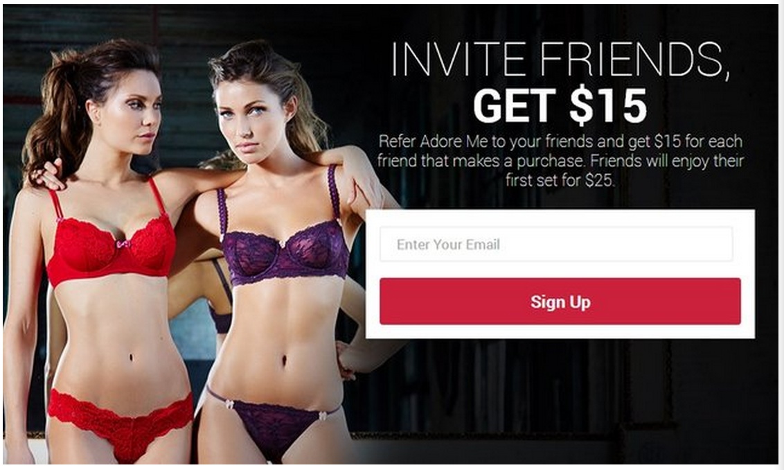 このサービスでは、友人を一人招待してくれる毎に、招待者にはAdoreme.comのストアーで使用できる電子マネーを$15分贈呈するようになっています。