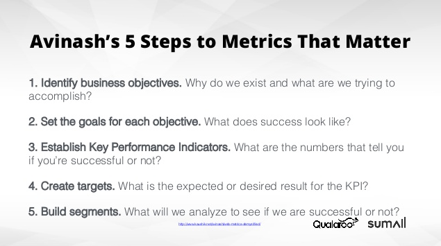最も重要なメトリックスにたどり着くためには、5つのステップをたどる必要が有る。