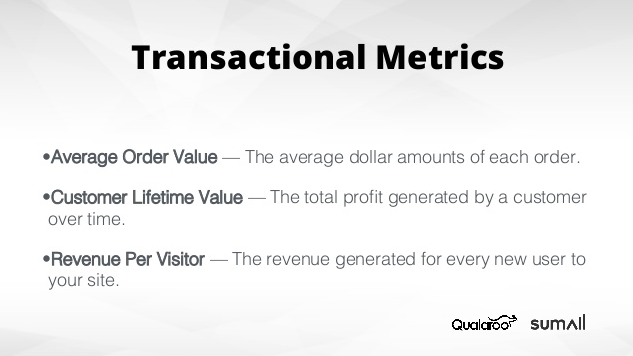 取引型に典型的なメトリックスは以下の通りだ。