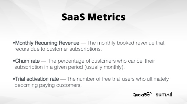 SaaS型に典型的なメトリックスは以下の通りだ。